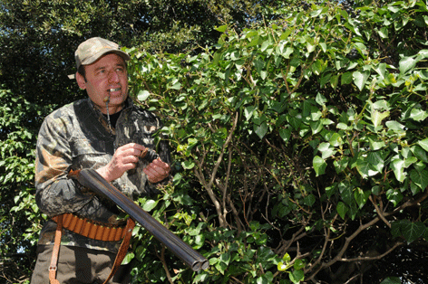 Le chasseur se met à l’affût derrière un arbuste et imite le chant de l’oiseau qui est repéré dans un périmètre plus ou moins important.. Le merle, étant territorial, interprète le chant de l’imitateur comme l’intrusion d’un rival sur son territoire.